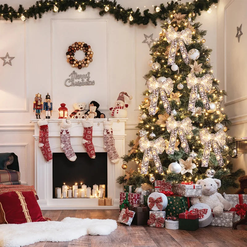 Xmas Tree LED Light Bow Ribbon Christmas Decorations